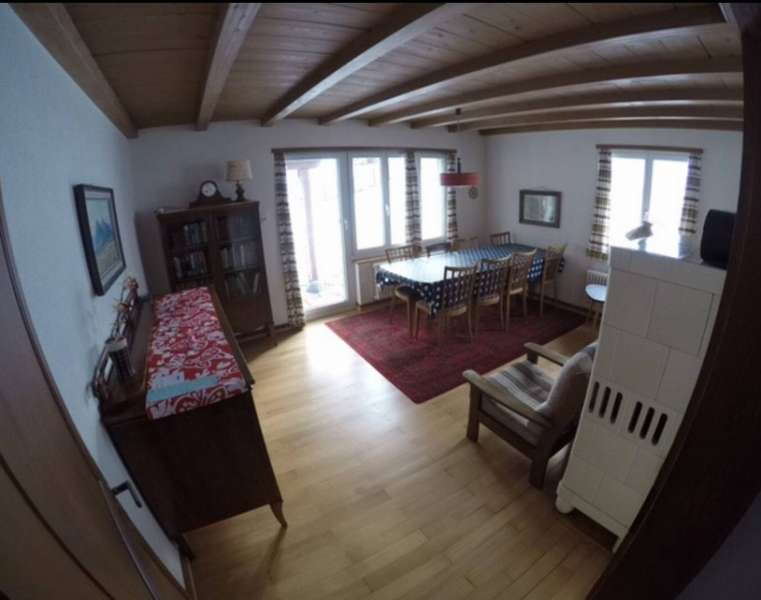 Ferienhaus: Wohn-Esszimmer mit Couch, Esstisch, Stühlen, WLAN und Radio. Zusätzlicher Aufenthalts-Schlafraumraum im Parterre mit einem Bett, ideal für gehbehinderte Personen oder mit einem Rollstuhl. Küche neu renoviert Induktionskochherd, moderner Backofen, Geschirrspüler, Kühlschrank. Mikrowelle, Kaffeemaschine und eine Tiefkühltruhe sowie Fondue- und Raclettegeschirr. 3 Schlafzimmer (1 Schlafzimmer mit Doppelbett und zwei Zustellbetten, 1 Schlafzimmer mit Doppelbett und Etagensparbett, so oben eine Matratze und unten eine Doppelmatratze, 1 Schlafzimmer mit zwei Einzelbetten). Ganz neues Bad mit Badewanne, separate Dusche, Doppellavabo, WC, Waschmaschine und Tumbler. Sowie zusätzlich ein neu renoviertes separates WC mit Lavabo. Keller neu Musikproberaum und Tischtennis Balkon mit Seesicht, Sitzplatz mit Grill, Wiesen zum Spielen und Verweilen beim Haus mit herrlicher Seesicht. Haus neu mit Wärmepumpe und Solarpannels. Neu WLAN im Ferienhaus. Gäste mit einem Rollstuhl auf Anfrage.