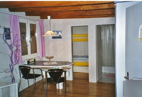 Ferienwohnung: Schlafzimmer mit Etagenbett, Wohnschlafzimmer mit Schlafcouch, Esstisch, Stühle und Sat-TV. Küchenecke mit Kocherd, Kühlschrank mit Gefrierfach und weitere Küchengeräte. Bad mit Dusche, WC, Waschmaschine und Tumbler. Skiraum, Balkon mit Tisch und Stühle mit herrlicher Aussicht. Sitzplatz mit Grill beim Haus.