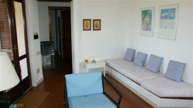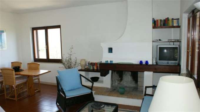 Ferienwohnung oben: Wohnzimmer mit gemütlicher Sitzgruppe mit Cheminée und Sat-TV, WIFI-Internet gratis. Esszimmer für 5 Personen. Gedeckte und grosse Terrasse (25m2) mit Meersicht. Komplett eingerichtete Küche mit Gasherd, Backofen und Kühlschrank. Bad mit Dusche, WC, Bidet, Lavabo und Waschmaschine zum freien Gebrauch. Schlafzimmer mit 2 getrennten Betten und Schlafzimmer mit grossem Doppelbett.