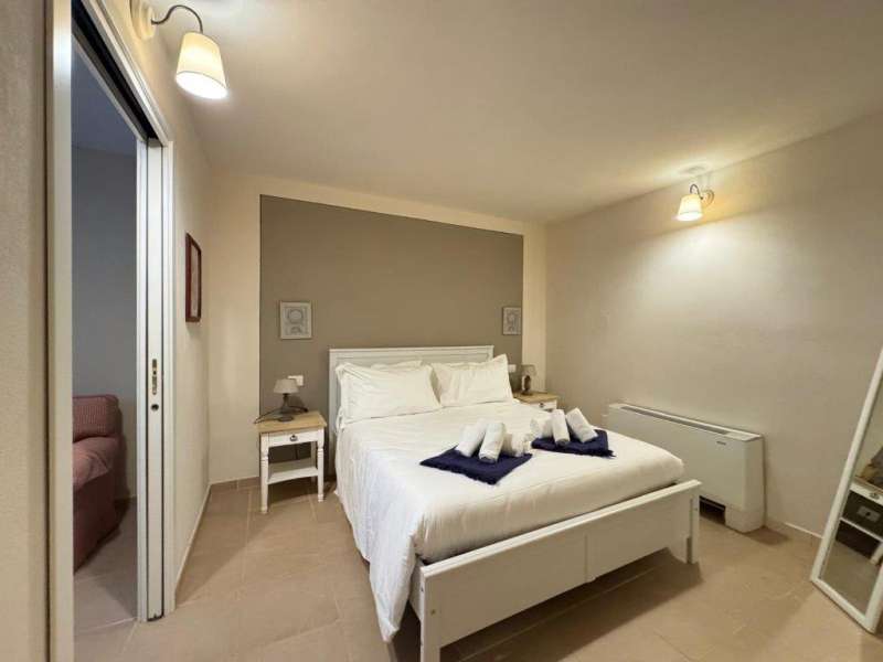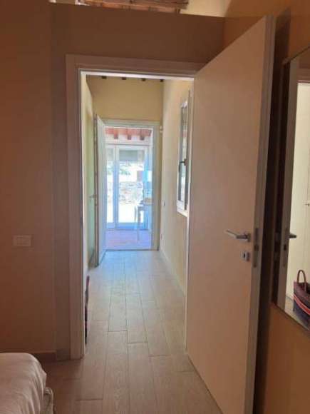Treppe in den 2. Stock (mit einem Kindersicherheitsgitter geschlossen): 1 Doppelbettzimmer mit 1 Pouf (Einzelbettsofa), Fenster mit traumhafter Aussicht, 1 Badezimmer mit Dusche, WC, Bidet, 1 Durchgangs-Einzelbettzimmer mit grossen Fenstertüren (welche verdunkelt werden können) und Aussicht in den Garten und Olivenhaine, von hier Zugang auf die Hinterseite des Gartens, mittels disem Einzelbettzimmer Zugang zu 1 weiteren Doppelbettzimmer.