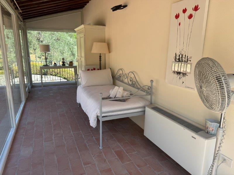 Das elegante und mit viel Charme renovierte Landhaus (mit Pool und Poolheizung) steht etwas erhöht in idyllischer Lage und unweit von Lucca entfernt. Es wurde nach toskanischer Tradition renoviert – es ist ein Einzelhaus mit privatem, in die Erde gebauten, Schwimmbad (Salzwasser, 10 x 4.5m, tief: 1.30m), auf Anfrage beheizbar bis 29°Celsius, grossem Garten, welcher in Terrassen, mit Olivenbäumen und verschiedenen Pflanzen, angelegt ist. Das Haus verfügt über eine gedeckte Veranda mit Aussenbereich, eine traumhafte Aussicht auf die naheliegenden Hügel und ist von Ruhe und den Klängen der Natur umgeben. Verlassen Sie das historische Stadtzentrum von Lucca, nur ein paar Minuten mit dem Auto - lassen Sie das Stadtleben hinter sich und fahren Sie den sanften Hügel hinauf. Sie entdecken eine unerwartete Landschaft - dieser wunderbare Besitz befindet sich an einer privilegierten Position. Das Zentrum von Lucca ist somit schnell und einfach zu erreichen; die Lage des Hauses ist ideal für Spaziergänge, Wanderungen oder Mountainbike Touren. Die Berge um Pisa und die Stadt Pisa sind einen Katzensprung entfernt.